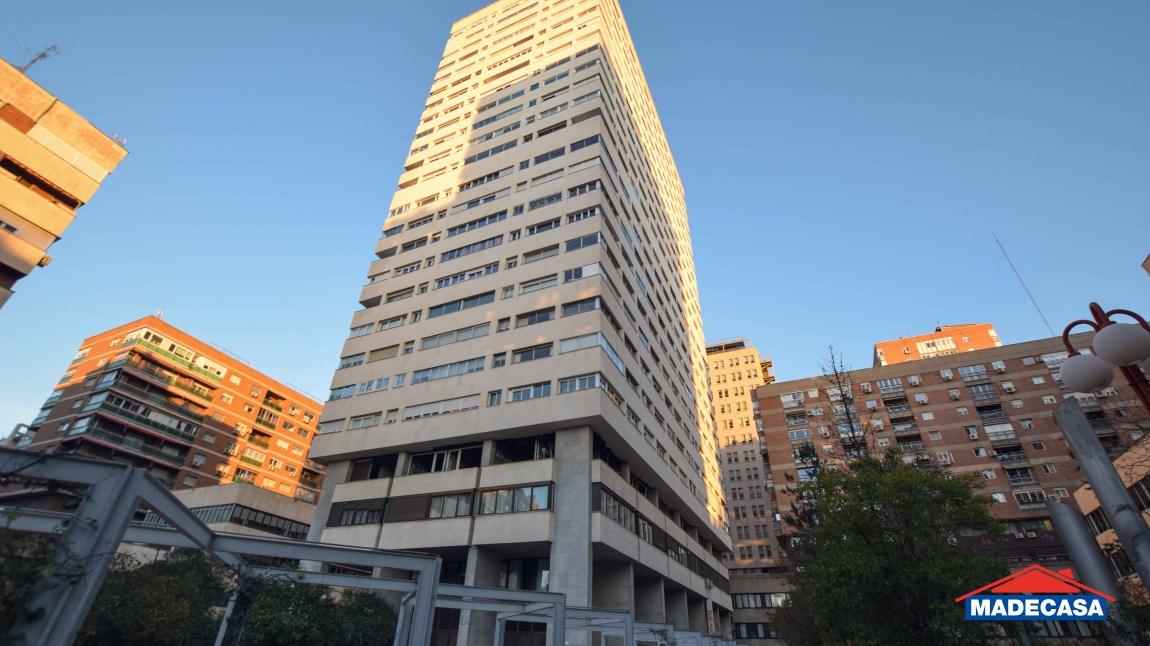 Madecasa alquila este estupendo estudio amueblado en la Torre Metropolitana, ubicado en 6ª planta tiene unas vistas y luz envidiables. Servicio de portería y piscina en la azotea para residentes con vistas 360º de Madrid. Gastos de comunidad y piscina están incluidos.