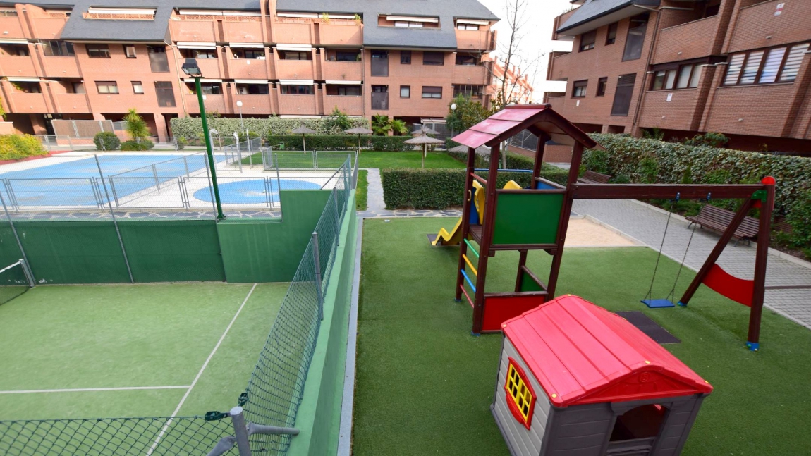 Fantástico bajo con dos jardines en la zona norte de Pozuelo Vivienda en planta baja situada en una de las zonas más demandadas de Pozuelo, que destaca por sus dos amplios jardines privados, su cómoda distribución y sus excelentes zonas comunes. La vivienda cuenta con tres dormitorios, siendo el principal tipo suite, con vestidor y baño incorporado. Dispone de aire acondicionado por conductos con bomba de frío/calor en todas las estancias y calefacción individual de gas natural, lo que garantiza confort durante todo el año. Incluye dos plazas de garaje en el precio. Distribución: - Salón de 23 m² con salida directa a un jardín delantero de 41 m² - Cocina de 9 m², con tendedero independiente de 5 m² y acceso a jardín trasero de 38 m² - Dormitorio principal de 13 m² con vestidor y baño en suite - Segundo dormitorio de 13 m² - Tercer dormitorio de 8 m² - Baño completo adicional Urbanización con fantásticas zonas comunes, ideal para quienes buscan tranquilidad, calidad de vida y una excelente ubicación. Condiciones de alquiler: 1 mes de fianza y garantías adicionales.