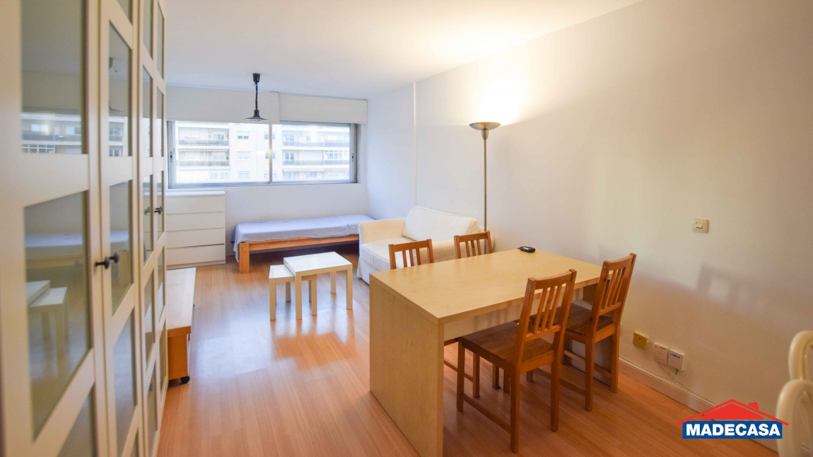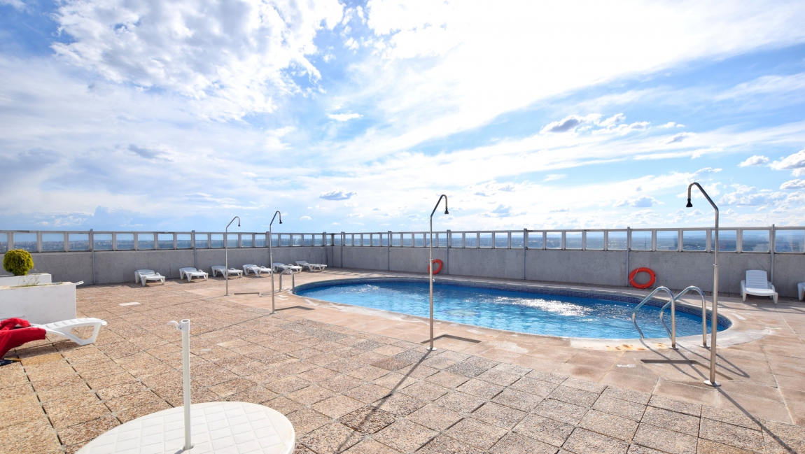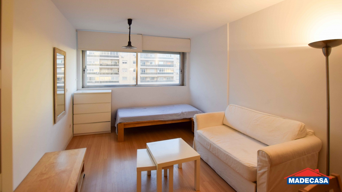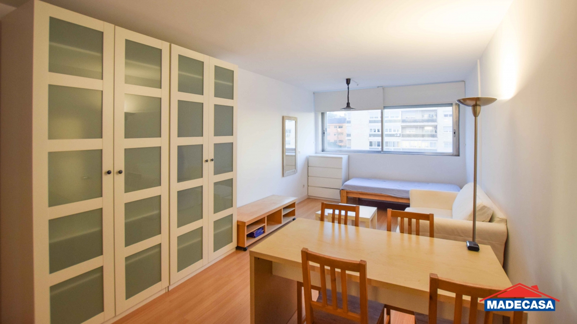 Madecasa alquila este estupendo estudio amueblado en la Torre Metropolitana, ubicado en 6ª planta tiene unas vistas y luz envidiables. Servicio de portería y piscina en la azotea para residentes con vistas 360º de Madrid. Gastos de comunidad y piscina están incluidos.