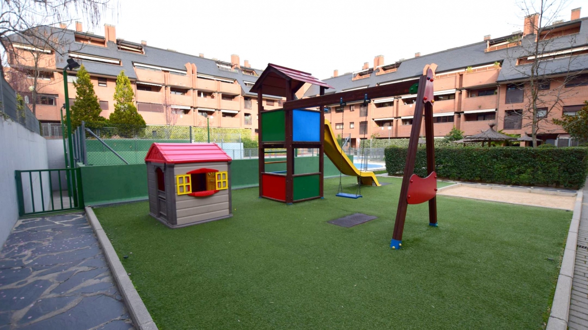 Fantástico bajo con dos jardines en la zona norte de Pozuelo Vivienda en planta baja situada en una de las zonas más demandadas de Pozuelo, que destaca por sus dos amplios jardines privados, su cómoda distribución y sus excelentes zonas comunes. La vivienda cuenta con tres dormitorios, siendo el principal tipo suite, con vestidor y baño incorporado. Dispone de aire acondicionado por conductos con bomba de frío/calor en todas las estancias y calefacción individual de gas natural, lo que garantiza confort durante todo el año. Incluye dos plazas de garaje en el precio. Distribución: - Salón de 23 m² con salida directa a un jardín delantero de 41 m² - Cocina de 9 m², con tendedero independiente de 5 m² y acceso a jardín trasero de 38 m² - Dormitorio principal de 13 m² con vestidor y baño en suite - Segundo dormitorio de 13 m² - Tercer dormitorio de 8 m² - Baño completo adicional Urbanización con fantásticas zonas comunes, ideal para quienes buscan tranquilidad, calidad de vida y una excelente ubicación. Condiciones de alquiler: 1 mes de fianza y garantías adicionales.